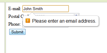 Additionally when using type="email" automatic validation occurs when the form is submitted. Again this is very helpful to users. One thing I have learned over the years is how little our customers actually know about the data we are collecting from them, in particular what is and is not valid. So any guidance we can offer can go a long way.